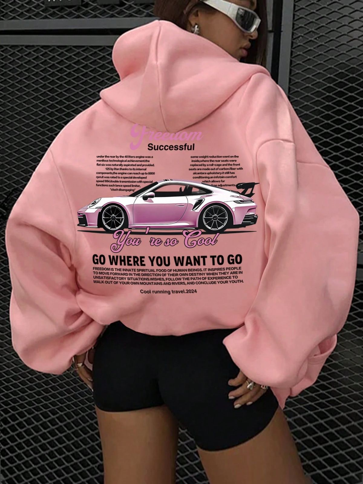 هودي نسائي سادة بمقاس كبير بشعار، مناسب للاستخدام اليومي الكاجوال، باللون الأسود